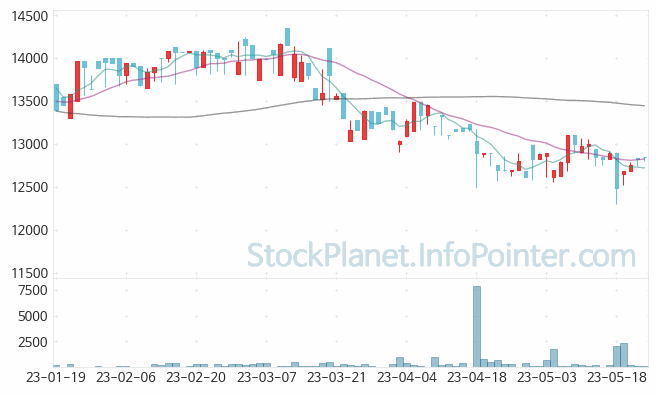 5일의 가격 변화에서 가장 높은 가격은 12,900원이며 가장 낮은 가격은 12,300원입니다.