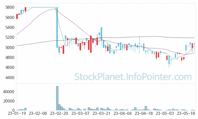 5일의 가격 변화에서 가장 높은 가격은 5,100원이며 가장 낮은 가격은 4,895원입니다.