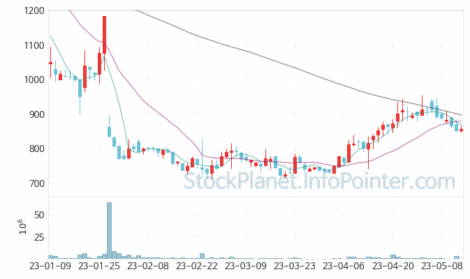 04월 27일부터 05월 12일까지는 845원에서 954원까지의 가격 범위에서 주가 변화가 있었습니다.