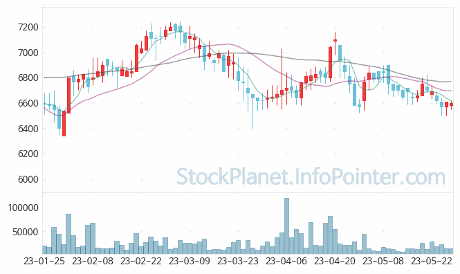 5일의 가격 변화에서 가장 높은 가격은 6,740원이며 가장 낮은 가격은 6,500원입니다.