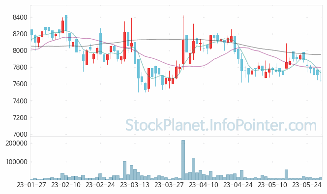 05월 17일부터 05월 31일까지는 7,630원에서 7,990원까지의 가격 범위에서 주가 변화가 있었습니다.