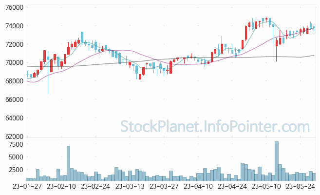 한국기업평가 종목은 분석일시를 기준으로 대략 0.1%대 상승 흐름을 보였으며, 장시작 주가 74,200원, 가장 높은 주가(고가)는 74,400원, 가장 낮은 주가(저가)는 73,500원을 보였습니다.