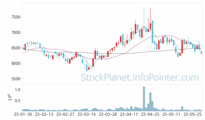 5일의 가격 변화에서 가장 높은 가격은 6,730원이며 가장 낮은 가격은 6,280원입니다.