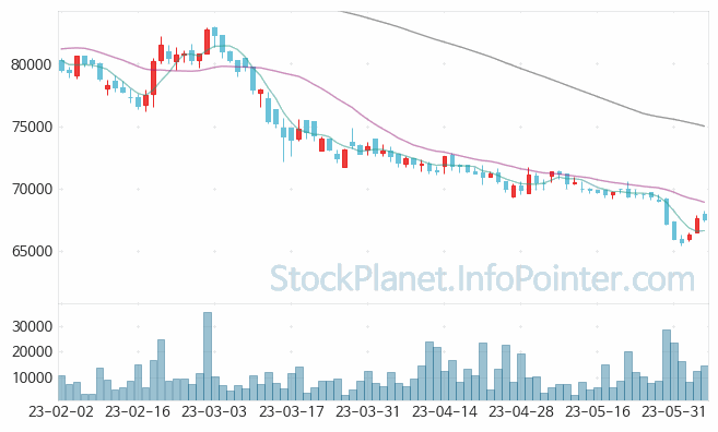 05월 23일부터 06월 07일까지는 65,400원에서 70,000원까지의 가격 범위에서 주가 변화가 있었습니다.