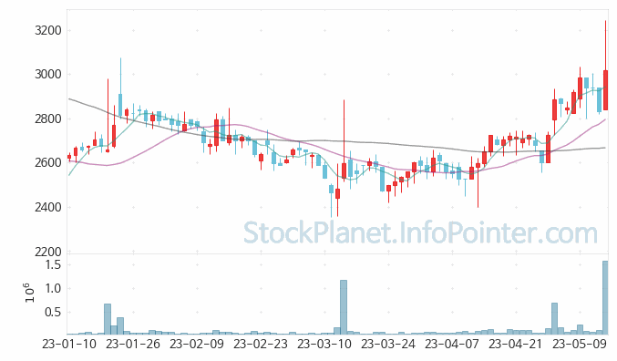 04월 28일부터 05월 15일까지는 2,600원에서 3,245원까지의 가격 범위에서 주가 변화가 있었습니다.