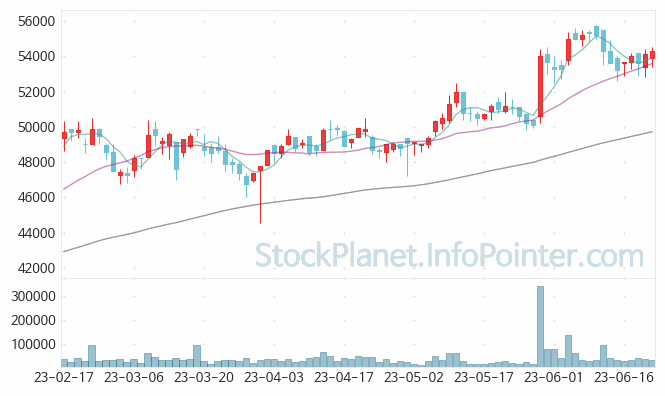 06월 09일부터 06월 22일까지는 52,600원에서 55,800원까지의 가격 범위에서 주가 변화가 있었습니다.