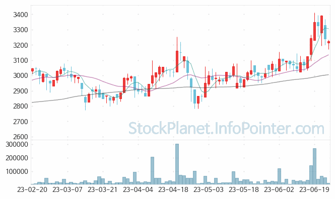 06월 12일부터 06월 23일까지는 3,020원에서 3,410원까지의 가격 범위에서 주가 변화가 있었습니다.