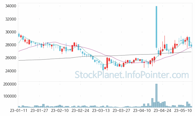 05월 02일부터 05월 16일까지는 26,600원에서 29,400원까지의 가격 범위에서 주가 변화가 있었습니다.