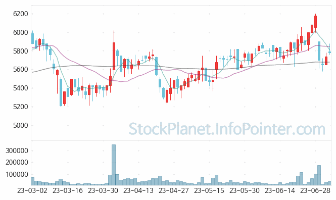 06월 21일부터 07월 04일까지는 5,580원에서 6,200원까지의 가격 범위에서 주가 변화가 있었습니다.