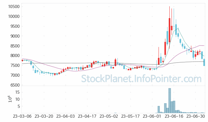 06월 23일부터 07월 06일까지는 7,470원에서 8,620원까지의 가격 범위에서 주가 변화가 있었습니다.