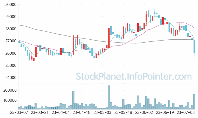 06월 26일부터 07월 07일까지는 25,700원에서 28,500원까지의 가격 범위에서 주가 변화가 있었습니다.