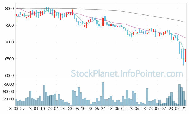 5일의 가격 변화에서 가장 높은 가격은 7,190원이며 가장 낮은 가격은 6,300원입니다.