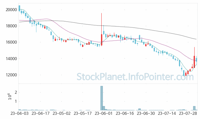 07월 21일부터 08월 03일까지는 11,750원에서 15,400원까지의 가격 범위에서 주가 변화가 있었습니다.