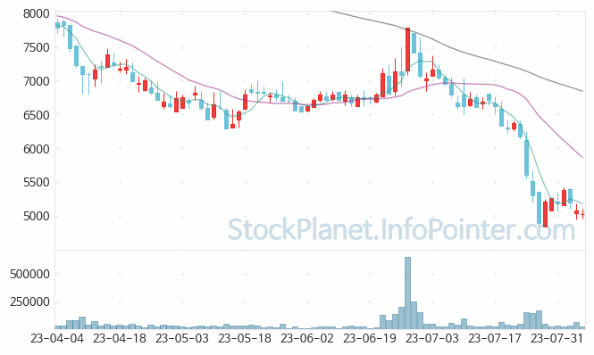 키네마스터 종목은 분석일시를 기준으로 대략 -1.0%대 하락 흐름을 보였으며, 장시작 주가 5,040원, 가장 높은 주가(고가)는 5,180원, 가장 낮은 주가(저가)는 4,950원을 보였습니다.