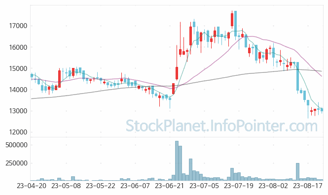 08월 09일부터 08월 23일까지는 12,650원에서 15,530원까지의 가격 범위에서 주가 변화가 있었습니다.
