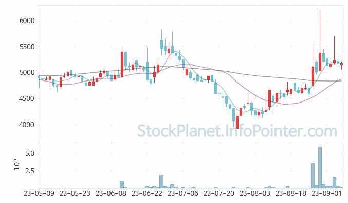 08월 25일부터 09월 07일까지는 4,525원에서 6,200원까지의 가격 범위에서 주가 변화가 있었습니다.