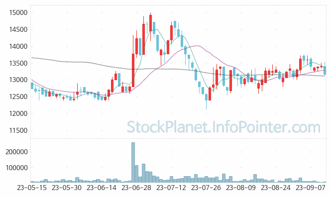 08월 31일부터 09월 13일까지는 13,010원에서 13,760원까지의 가격 범위에서 주가 변화가 있었습니다.
