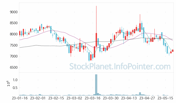05월 08일부터 05월 19일까지는 7,040원에서 8,090원까지의 가격 범위에서 주가 변화가 있었습니다.
