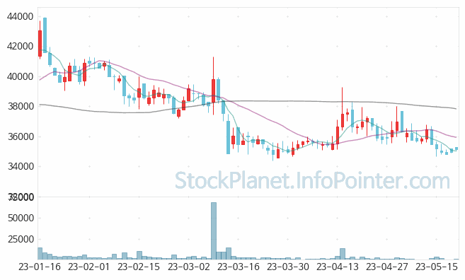 05월 08일부터 05월 19일까지는 34,650원에서 36,900원까지의 가격 범위에서 주가 변화가 있었습니다.